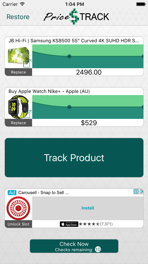 Your previous price fetches are presented on a graph so you can visualise trends.