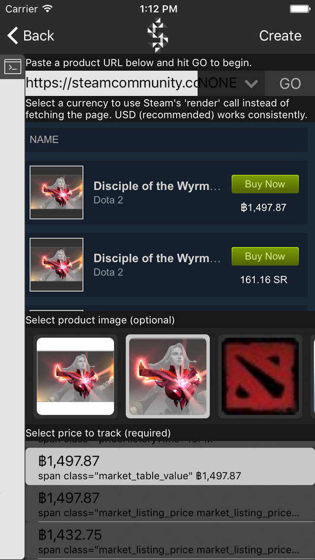 PriceTRACK is equipped to take advantage of specific functions for some websites (e.g. the Steam Marketplace).
